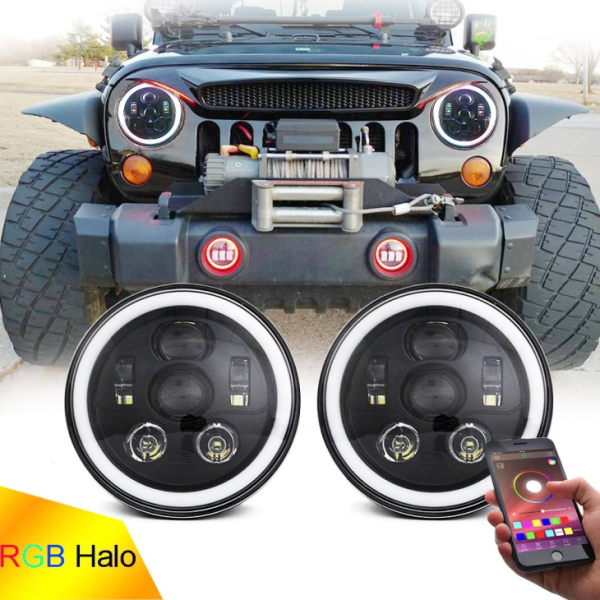 Lampu depan LED RGB Halo 7 Inch for Jeep Wrangler JK JL Multi Function RGB Headlamp
