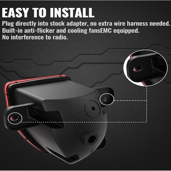 Plast og spila, H4 og H13 millistykki innifalin, venjulega í 30 mínútur eða minna til að ljúka uppsetningunni uppfærð, Framljós okkar hafa samþætt Bulit-in EMC aðgerð.
